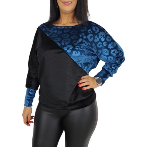 Kerek nyakkivágású, laza denevér ujjú, passzés aljú és passzés ujjvégű női felső, amely egyszerre elegáns és divatos. Anyaga puha, rugalmas plüss bársony, enyhén fényes felülettel és exkluzív mintázattal.Anyagösszetétel: 95% polyester, 5% elasztán.Megjegyzés: A termék színtelítettségében, árnyalatában lehet eltérés a stúdióban vagy a szabadban "használt" fényviszonyoknak köszönhetően, illetve az okos eszközök kijelzőjének különböző szín - és fényerő beállításai miatt.Szállítás 1-2 munkanap!Mosási javaslat:30°C-on, kifordítva, kímélő programon mosható.Ne fehérítsd, optikai fehérítőt ne használj.Színfogó kendő használata ajánlott.