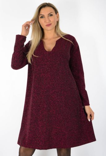 Lurex anyagú, ívelt nyakkivágású, plus size ruha – Burgundi