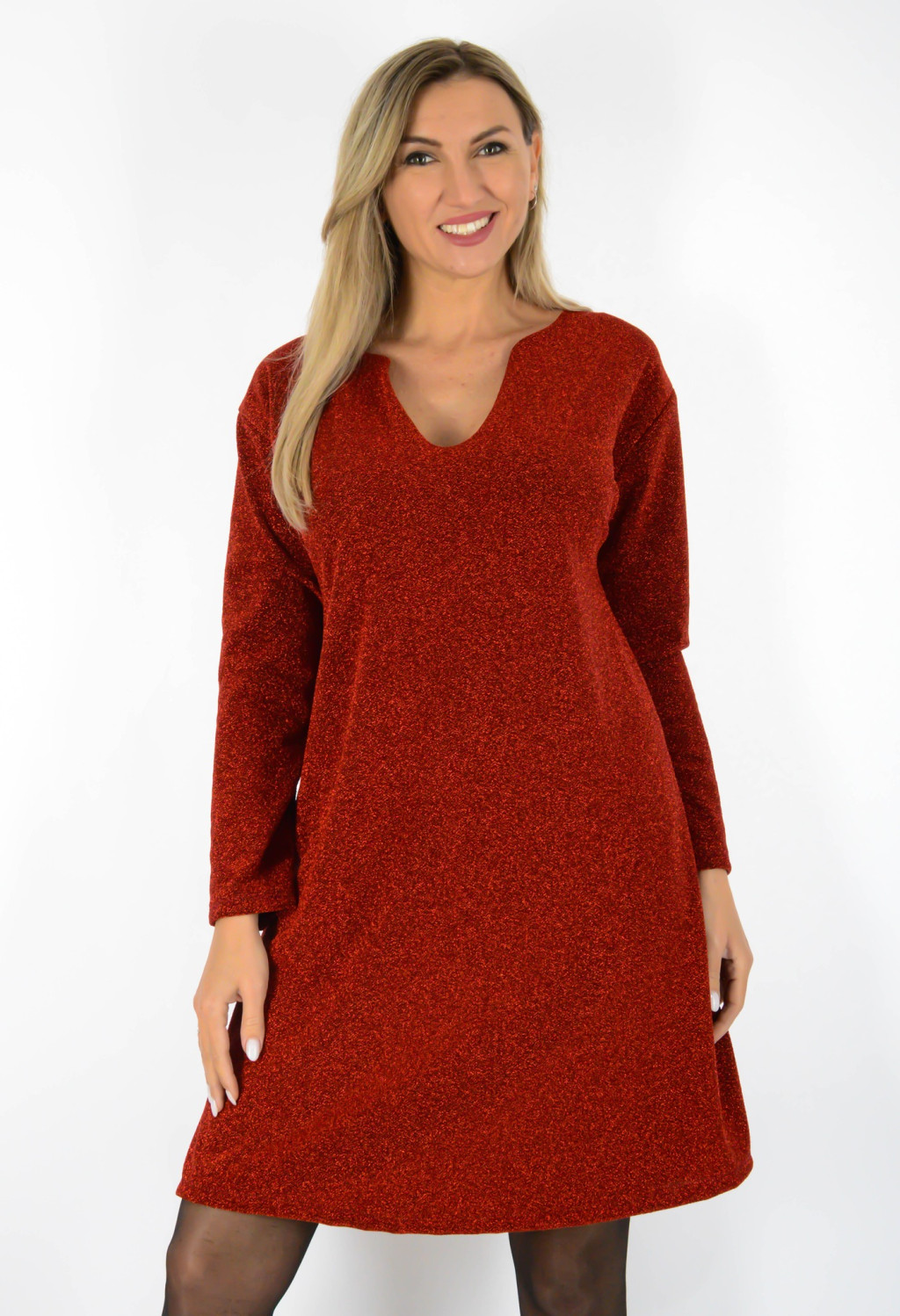 Finoman csillogó lurex anyagú, plus size ruha ívelt nyakkivágással és laza, A-vonalú szabással. Kényelmes, rugalmas anyaga szépen követi az alakot, miközben elegáns megjelenést ad. Ideális választás ünnepi alkalmakra, vacsorákra vagy akár stílusos hétköznapokra.Anyagösszetétel: 95% viszkóz, 5% elasztán.Megjegyzés: A termék színtelítettségében, árnyalatában lehet eltérés a stúdióban vagy a szabadban "használt" fényviszonyoknak köszönhetően, illetve az okos eszközök kijelzőjének különböző szín - és fényerő beállításai miatt.Szállítás 1-2 munkanap!Mosási javaslat:– 30°C-on, kímélő programon mosható– Kifordítva mosd, színfogó kendő használata ajánlott– Fehérítő és optikai fehérítő használata nem javasolt– Ne centrifugáld erősen– Fektetve szárítsd– Alacsony hőfokon, kifordítva vasalható