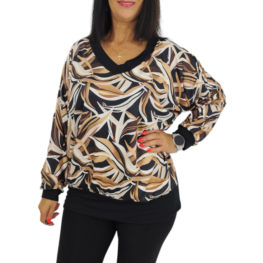 Plus size V-nyakú, denevérujjú, passzés aljú, gumírozott hosszú ujjú női felső. Elegáns és divatos választás alkalmakra vagy hétköznapokra. Puha tapintású, kényelmes és rugalmas anyagból készült, így egész nap komfortos viselet.Anyagösszetétel: 95% poliészter, 5% elasztán.Megjegyzés: A termék színtelítettségében, árnyalatában lehet eltérés a stúdióban vagy a szabadban "használt" fényviszonyoknak köszönhetően, illetve az okos eszközök kijelzőjének különböző szín - és fényerő beállításai miatt.Szállítás 1-2 munkanap!Mosási javaslat:30°C-on, kifordítva, kímélő programon mosható.Ne fehérítsd, optikai fehérítőt ne használj.Színfogó kendő használata ajánlott.