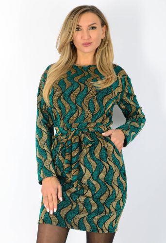 Yesstory lurexes, derekán megkötős, zsebes ruha – Zöld/Arany