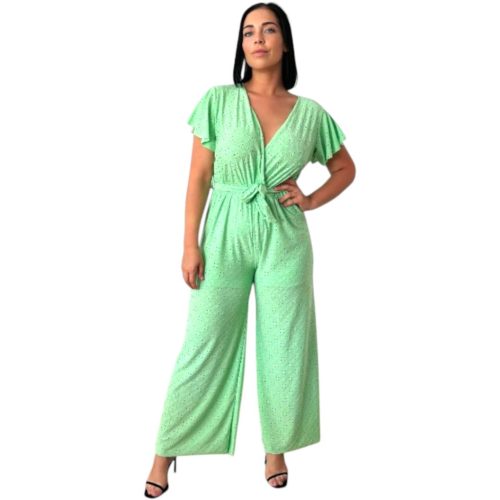 V-nyakú, átlapolt, derékban enyhén gumírozott és megkötős női overál. Alsó résszel ellátott, ezért nem átlátszó. Lepkeujjas, bő szárú fazonja elegáns és nőies megjelenést ad. Anyaga légies, puha madeira mintás, rugalmas és kényelmes – tökéletes alkalmi viselet.Anyagösszetétel: 95% poliészter, 5% spandex.Megjegyzés: A termék színtelítettségében, árnyalatában lehet eltérés a stúdióban vagy a szabadban "használt" fényviszonyoknak köszönhetően, illetve az okos eszközök kijelzőjének különböző szín - és fényerő beállításai miatt.Szállítás 1-2 munkanap!Mosási javaslat:30°C-on, kifordítva, kímélő programon mosható.Ne fehérítsd, optikai fehérítőt ne használj.Színfogó kendő használata ajánlott.