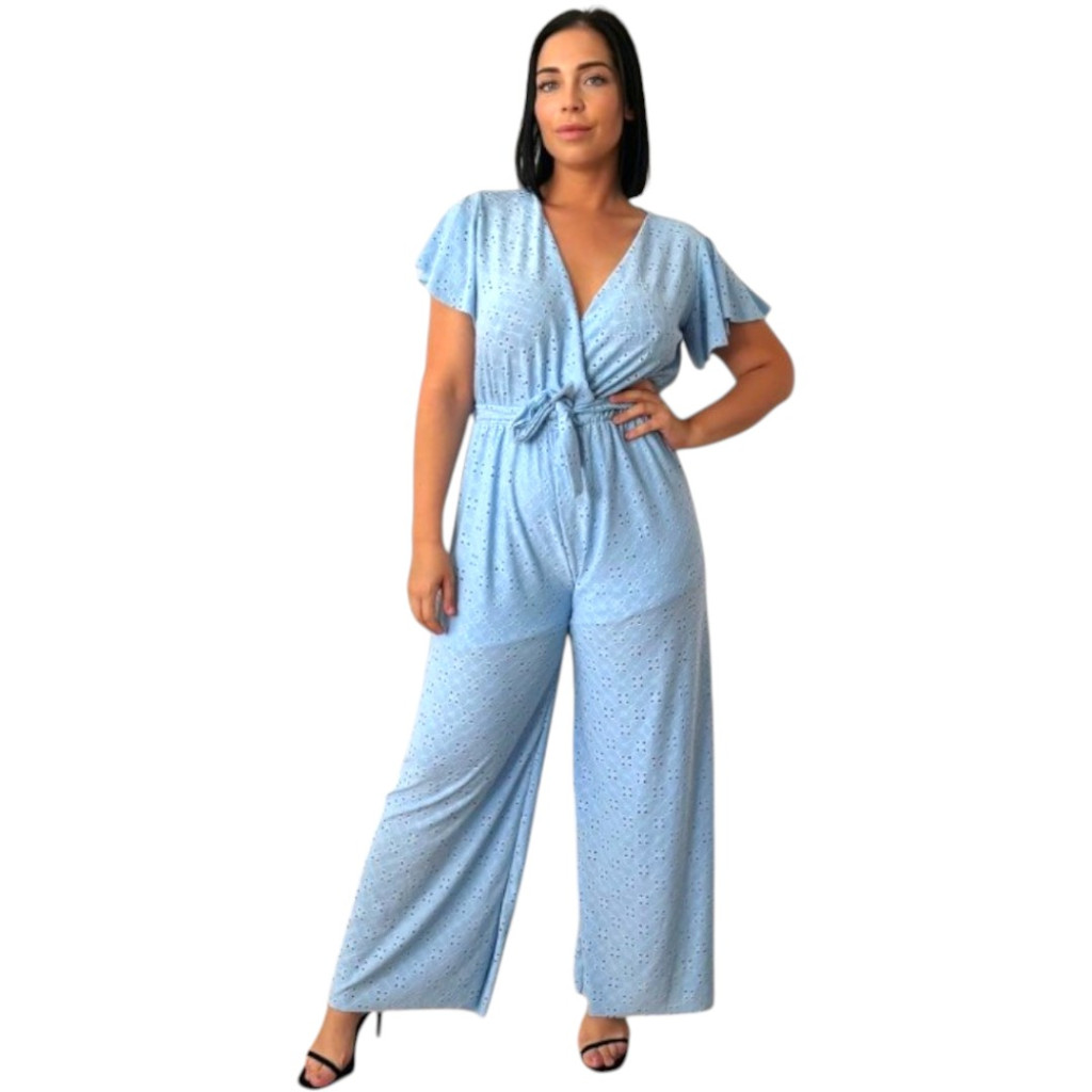 V-nyakú, átlapolt, derékban enyhén gumírozott és megkötős női overál. Alsó résszel ellátott, ezért nem átlátszó. Lepkeujjas, bő szárú fazonja elegáns és nőies megjelenést ad. Anyaga légies, puha madeira mintás, rugalmas és kényelmes – tökéletes alkalmi viselet.Anyagösszetétel: 95% poliészter, 5% spandex.Megjegyzés: A termék színtelítettségében, árnyalatában lehet eltérés a stúdióban vagy a szabadban "használt" fényviszonyoknak köszönhetően, illetve az okos eszközök kijelzőjének különböző szín - és fényerő beállításai miatt.Szállítás 1-2 munkanap!Mosási javaslat:30°C-on, kifordítva, kímélő programon mosható.Ne fehérítsd, optikai fehérítőt ne használj.Színfogó kendő használata ajánlott.