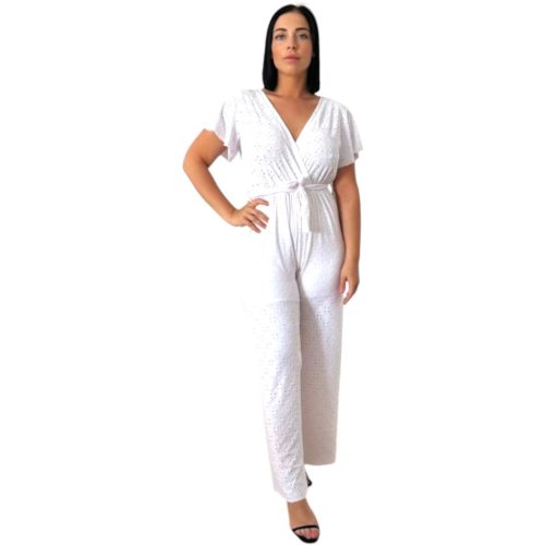 V-nyakú, átlapolt, derékban enyhén gumírozott és megkötős női overál. Alsó résszel ellátott, ezért nem átlátszó. Lepkeujjas, bő szárú fazonja elegáns és nőies megjelenést ad. Anyaga légies, puha madeira mintás, rugalmas és kényelmes – tökéletes alkalmi viselet.Anyagösszetétel: 95% poliészter, 5% spandex.Megjegyzés: A termék színtelítettségében, árnyalatában lehet eltérés a stúdióban vagy a szabadban "használt" fényviszonyoknak köszönhetően, illetve az okos eszközök kijelzőjének különböző szín - és fényerő beállításai miatt.Szállítás 1-2 munkanap!Mosási javaslat:30°C-on, kifordítva, kímélő programon mosható.Ne fehérítsd, optikai fehérítőt ne használj.Színfogó kendő használata ajánlott.