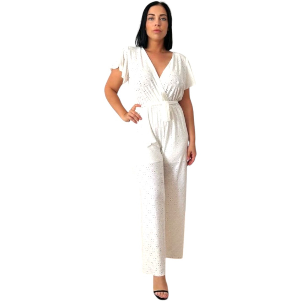 V-nyakú, átlapolt, derékban enyhén gumírozott és megkötős női overál. Alsó résszel ellátott, ezért nem átlátszó. Lepkeujjas, bő szárú fazonja elegáns és nőies megjelenést ad. Anyaga légies, puha madeira mintás, rugalmas és kényelmes – tökéletes alkalmi viselet.Anyagösszetétel: 95% poliészter, 5% spandex.Megjegyzés: A termék színtelítettségében, árnyalatában lehet eltérés a stúdióban vagy a szabadban "használt" fényviszonyoknak köszönhetően, illetve az okos eszközök kijelzőjének különböző szín - és fényerő beállításai miatt.Szállítás 1-2 munkanap!Mosási javaslat:30°C-on, kifordítva, kímélő programon mosható.Ne fehérítsd, optikai fehérítőt ne használj.Színfogó kendő használata ajánlott.