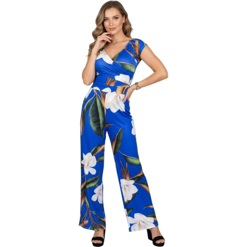 • Átlapolt, dekoltázst kiemelő felsőrész• Vállrahúzható, variálható viselet• Rövidujjú kialakítás• Deréknál szabott, nőies fazon• Bő szárú nadrág, alaknyújtó hatás• Puha, jól szellőző anyag• Királykék alapon nagyméretű virágmintás design