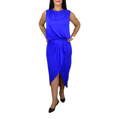 Miranda ujjatlan gumírozott derekú ruha – Királykék ráncolt kerek nyakú, ujjatlan fazon, derekában gumírozott kialakítással, enyhén aszimmetrikus, átlapolt szoknyarésszel.Anyagösszetétel: 95% viscosa, 5% elastan.Anyagából fakadóan a ruha kényelmesen és esztétikusan enged. Méreteket mindig ellenőrizd! A termék színtelítettségében, árnyalatában lehet eltérés a stúdióban vagy a szabadban "használt" fényviszonyoknak köszönhetően, illetve az okos eszközök kijelzőjének különböző szín - és fényerő beállításai miatt.