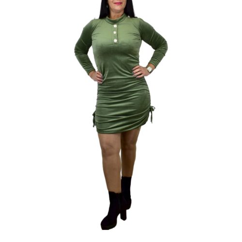 Neali díszgombos oldalt húzott plüss ruha – Khaki magasított nyakú, mellrésznél, vállrésznél díszgombos, kétoldalt összehúzott, megkötős, hosszú ujjú midi női ruha amely elegánsan divatos viselet alkalmakra. Anyaga puha plüss bársony, kényelmes és rugalmas. Anyagösszetétel: 95% viscose, 5% elastan.Anyagából fakadóan kényelmesen és esztétikusan enged. Méreteket mindig ellenőrizd! A termék színtelítettségében, árnyalatában lehet eltérés a stúdióban vagy a szabadban "használt" fényviszonyoknak köszönhetően, illetve az okos eszközök kijelzőjének különböző szín - és fényerő beállításai miatt.