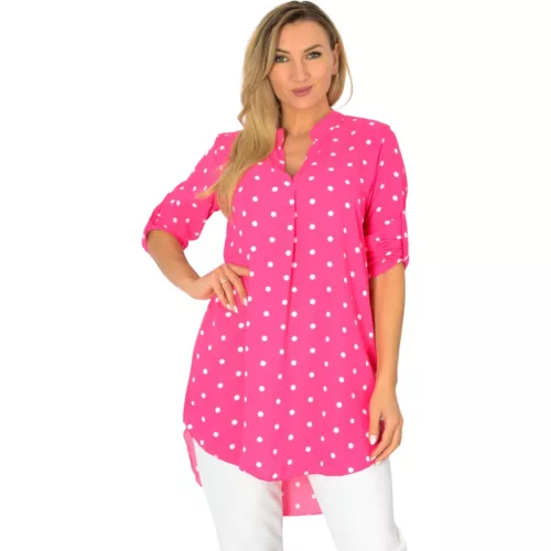 • Roll-up ujjú, praktikus kialakítás• Lenge, laza szabás• Nem tapad, kényelmes viselet• Puha, könnyed anyag• Játékos pöttyös minta• Élénk pink szín