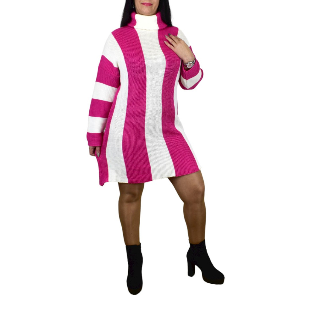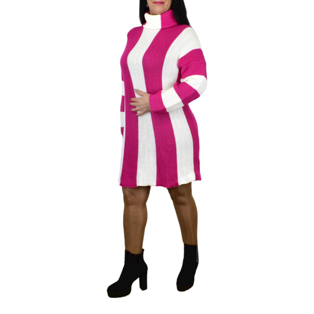 Miley csíkos garbós kötött ruha – Pink/fehér